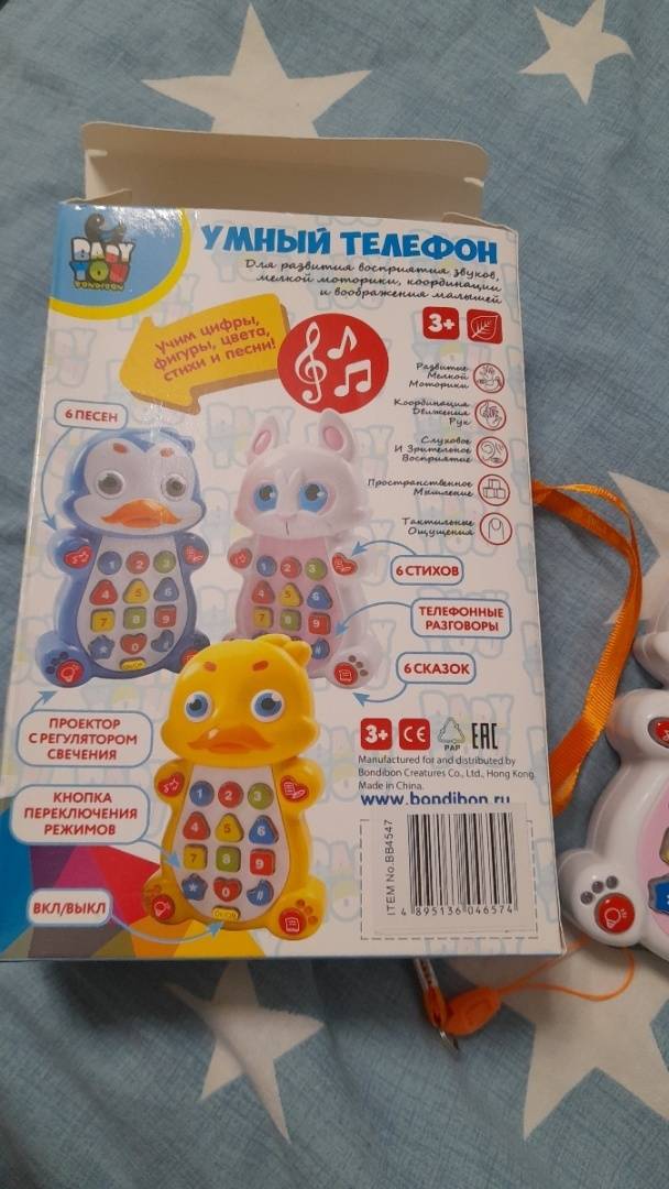 Игрушка развивающая телефон от ТМ Bondibon поможет в изучении цифр, фигур и цветов. Расскажет 6 интересных сказок, 6 стишков и споет 6 песенок. В игрушке есть настоящий проектор и звуки телефона. Такой замечательный телефон не только развлечет ребенка, но и в игровой форме поспособствует развитию мелкой моторики, звуковому и слуховому восприятию, развитию пространственного мышления.