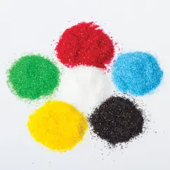 При помощи деревянной палочки, входящей в комплект, необходимо снять с элементов рисунка защитный слой бумаги и на показавшийся клеевой слой аккуратно насыпать цветной песок соответствующего цвета. Рекомендуется начинать с более тёмных оттенков и работать одновременно только с одним цветом песка.
