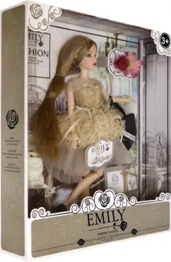 В наборе кукла (28 см.) в платье и туфельках К кукле прилагается сумочка, собачка и два цветочка.
