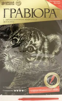 Гравюра Тигрёнок, с металлическим эффектом Золото, А4