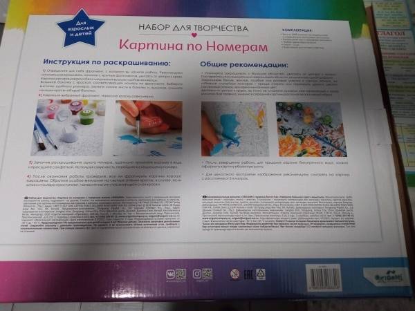 - холст (100%: хлопок) на подрамнике, с нанесенным контурным рисунком,
