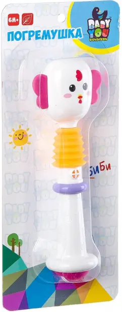 Яркая погремушка из безопасного пластика - лучшая первая игрушка для малыша. Погремушка имеет приятную расцветку и звук, гладкие контуры и формы. При сжатии и тряске погремушка издает разные звуки. Яркие и качественные погремушки ТМ BABY YOU BONDIBON формируют тактильные ощущения, восприятие звуков,