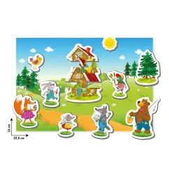 Магнитный театр содержит специальную декорацию, которая перенесет вас в увлекательный мир сказки. Объемные магниты легко крепятся к холодильнику или к специальной магнитной доске. Игра содержит в
