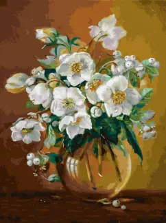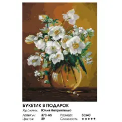Представляем цветочный натюрморт от художника Юлии Неприятель! С помощью набора для творчества от компании "Белоснежка" вы сможете изобразить такой нежный букет.