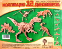 Коллекция из 12 сборных деревянных моделей динозавров.