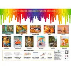 Рисуйте! Создавайте прекрасные сюжеты, станьте настоящим художником! С наборами Живопись на холсте это легко и просто, в комплекте есть все для работы над картиной на холсте. Просто возьмите стакан с водой и бумажную салфетку и время для творчества наступило. Размер 30х40 см. оптимальный для того чтобы получился красивый детализированный сюжет. Основа картины - хлопковый холст на деревянном подрамнике с напечатанной схемой изображения. Холст загрунтован и полностью готов к нанесению краски, акриловые краски на водной основе экологически безопасны, номера на баночках соответствуют номерам на схеме. Количество красок достаточное для раскрашивания картины, даже в 2 слоя.