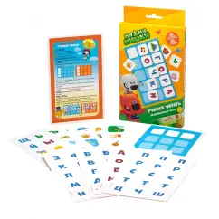 В наборе: 40 карточек с картинками, 65 карточек с буквами, двусторонний планшет для составления слов.