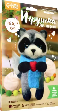 В наборе: цветная шерсть, глазки, инструкция, игла для валяния.