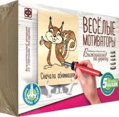 Набор для творчества "Выжигание по дереву Веселые Мотиваторы" - это создание с помощью техники "выжигание" забавных деревянных картинок, которые каждый день будут напоминать, что жизнь прекрасна и мотивировать всех членов семьи улыбаться чаще! Особенно если картинку разместить на видном месте или установить на любой полочке с помощью пластикового мольберта.