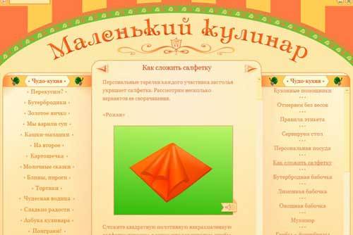 Замечательная программа подойдет не только для детей, но и для взрослых. Незамысловатые, хорошие рецепты, в яркой хорошо озвученной программе. В программе есть правила этикета, словарик, сервировка стола, персональная посуда, как сложить салфетку и многое, многое другое. А так же в программе есть небольшая игра. Хорош...