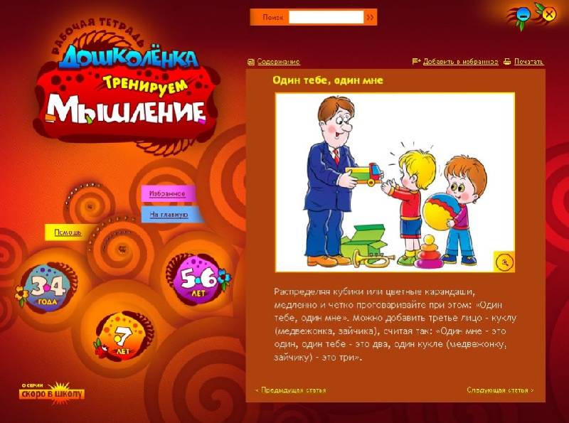 Этот мультимедийный диск содержит готовые материалы для развития всех форм мышления у детей от 3 до 7 лет. Они будут проводить почти настоящие эксперименты, которые способствуют развитию наглядно-действенного мышления: найду