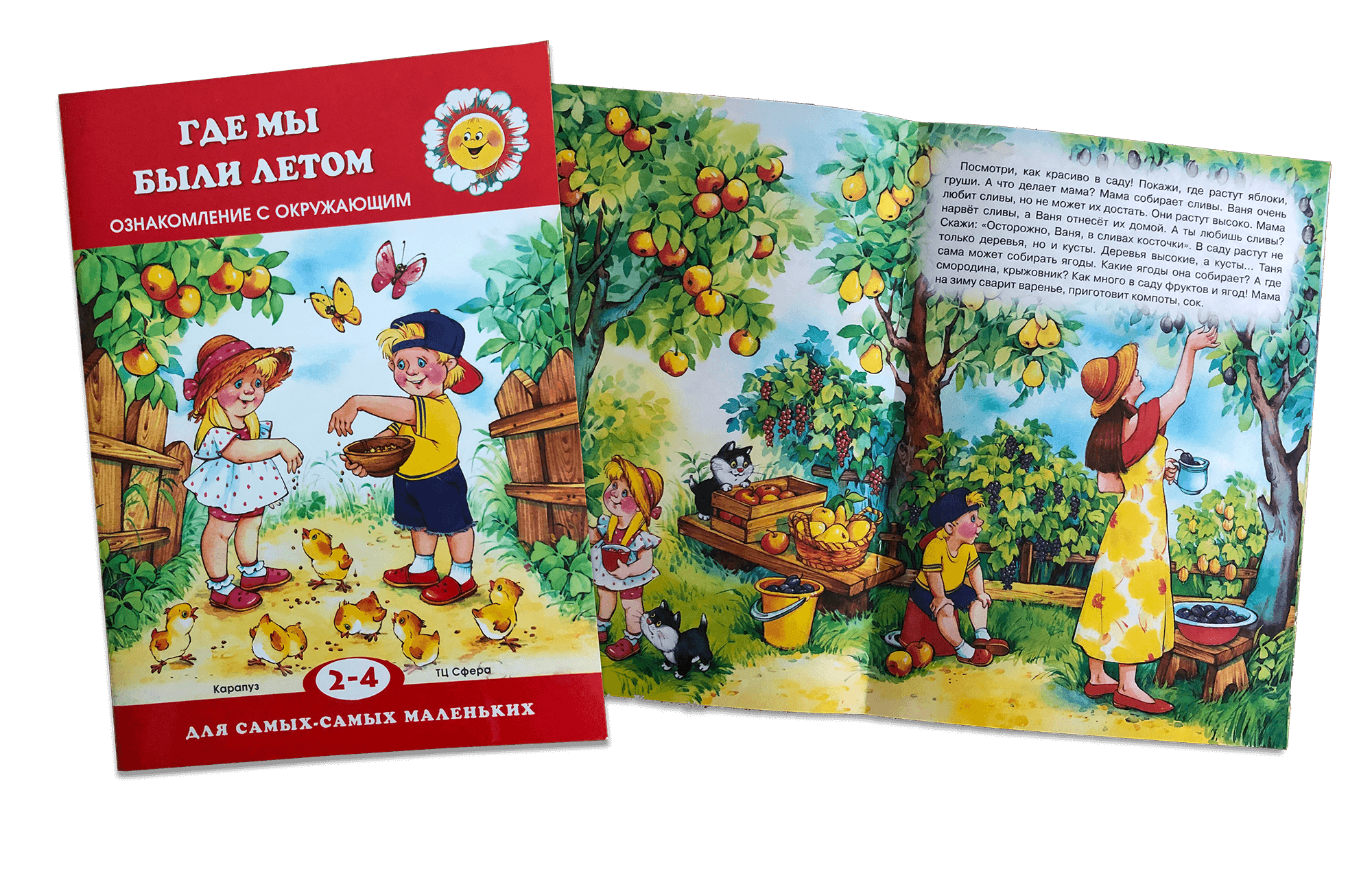 Активным познанием мира вместе с детьми могут заниматься и родители. Так, например, книга «Где мы были летом» С.Н. Савушкина рассказывает о летних каникулах детей в деревне. В обращении к родителям автор советует сначала познакомить ребенка с героями книги, вместе с ним рассмотреть все иллюстрации в целом, а затем с помощью наводящих вопросов обратить его внимание на детали картинок. Книга содержит качественные иллюстрации жизни загородом.