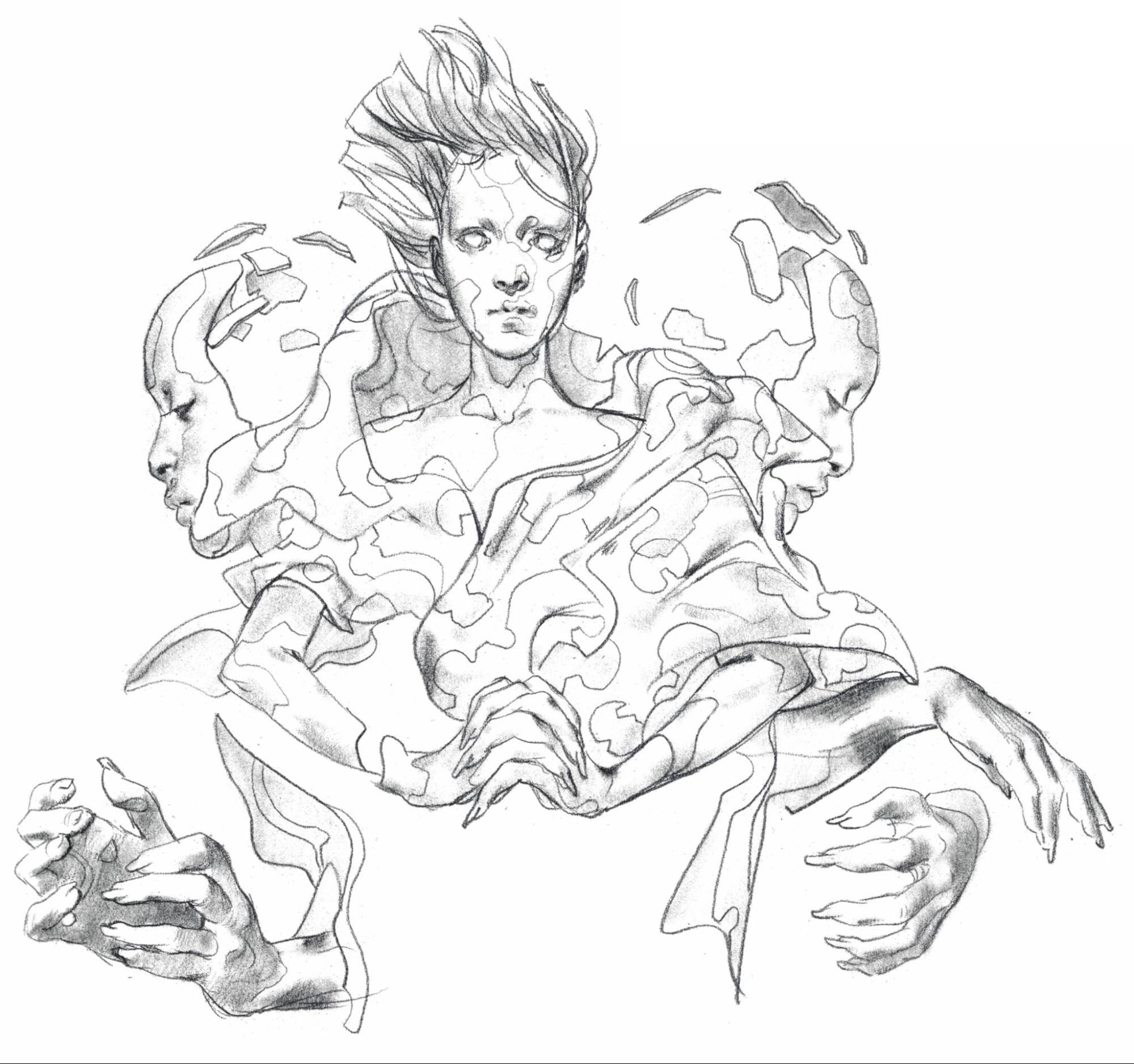 Чаще всего я начинаю рисовать по референсам — в частности, фотографиям. Их я нахожу в свободном доступе, и они становятся бесценной отправной точкой. Когда у меня не получается найти изображения, которые соответствуют задумке, я позирую и фотографирую себя. Затем я изменяю персонажа настолько, насколько могу, чтобы он не выглядел так, будто его взяли с конкретного снимка