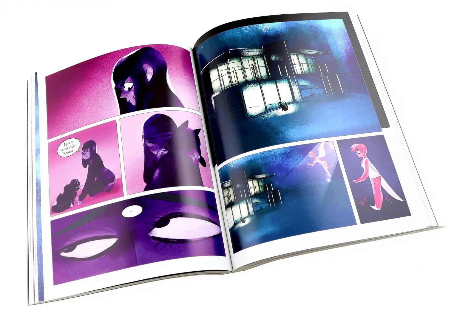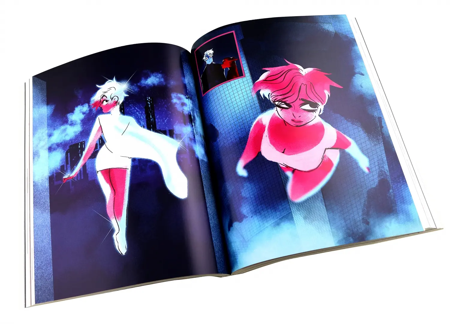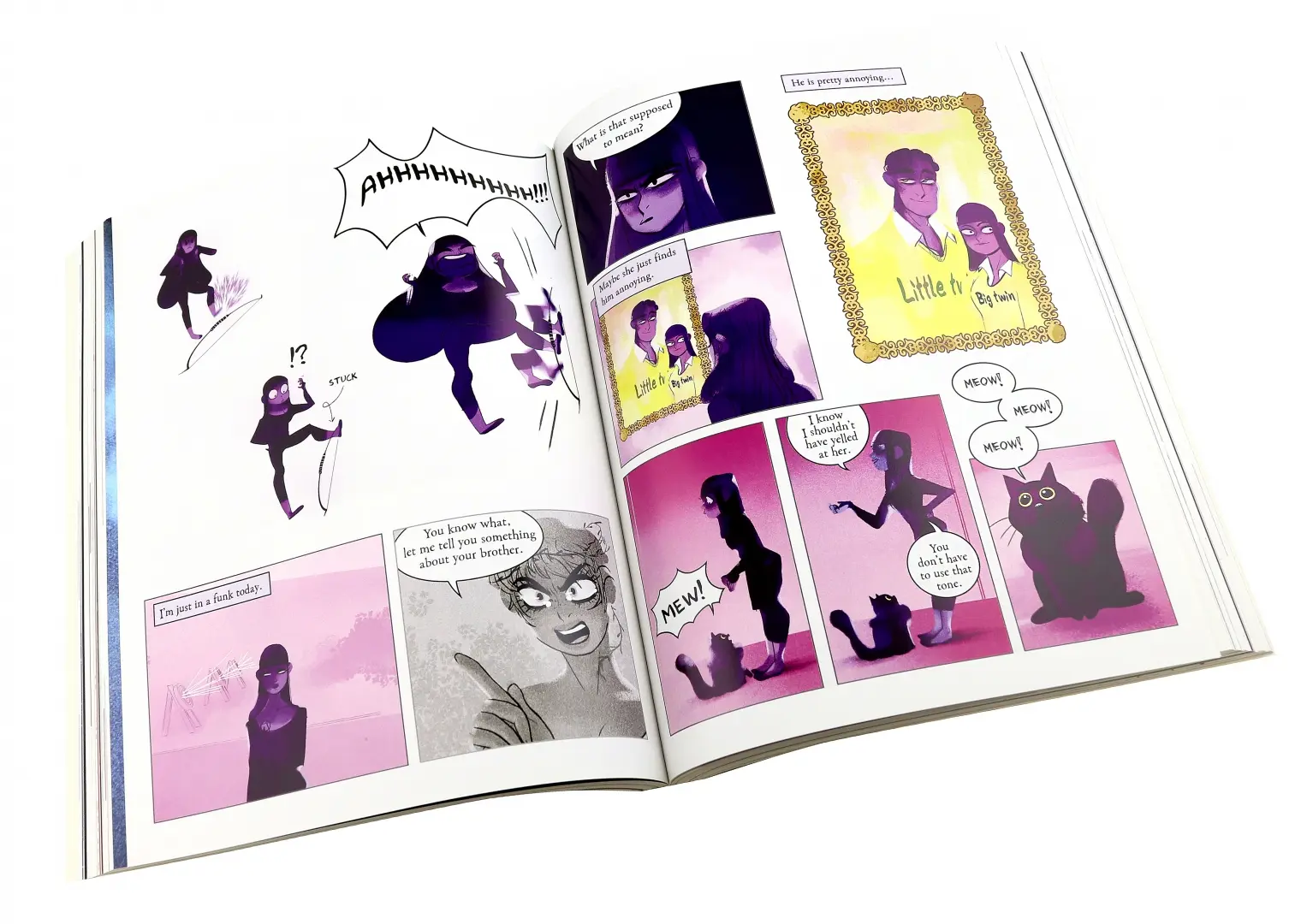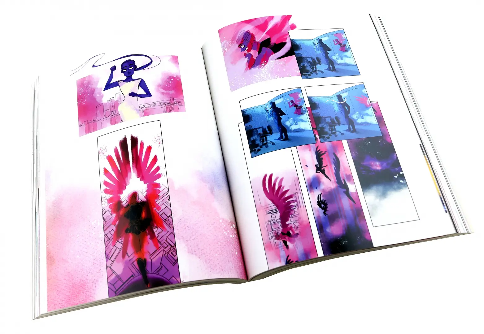 Аид с синей кожей вполне прижился в массовой культуре после того, как именно таким его показали в диснеевском «Геркулесе». В «Преданиях Олимпа» все боги разноцветные: Аид традиционно мертвенно-синий, наивная жизнелюбивая Персефона — розовая, а, например, фигура Геры окрашена оранжевым. Вместе с эффектами, усиливающими эмоциональное впечатление и делающими комикс таким кинематографичным (вроде монтажных склеек или наезда камеры), цвет создает особую атмосферу. Графический роман напоминает одновременно и сериал «Эйфория» то нежными, то едва ли не неоновыми оттенками, переливом блёсток и эстетизацией даже самых тяжелых моментов, и отсылает к первоисточнику: например, начинается он нетривиально — с цитаты из Гесиода.