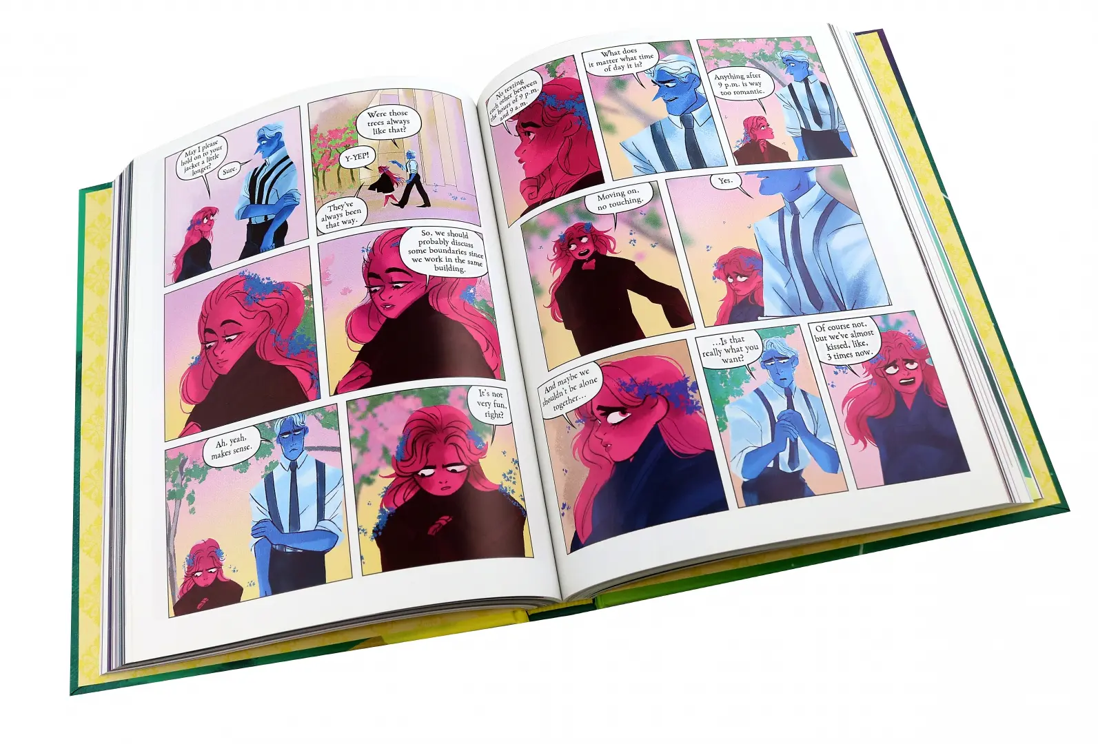 «Предания Олимпа» — конечно, в первую очередь, романтический комикс об отношениях юной Персефоны и мрачного владыки подземного царства Аида. Возможно, те, кто хорошо знаком с мифом об Аиде и Персефоне, испытают в связи с этим некоторое недоумение. Ведь в оригинальной истории романтического в их отношениях не было ничего — он похитил и удерживал юную девушку, пока ее мать испытывала невероятные страдания. Завязка истории Смайт иная: Аид и Персефона вполне мирно знакомятся на вечеринке богов (и это, кстати, очень в духе античных мифов, где небожители то и дело закатывали пирушки, да и вообще не особенно отличались от людей со всеми этими своими сложными личными историями, конфликтами и влюбленностями). Но, тем не менее, в комиксе будет возникать тема насилия, а поднимаемые проблемы окажутся гораздо серьезнее, чем центральный любовный сюжет.