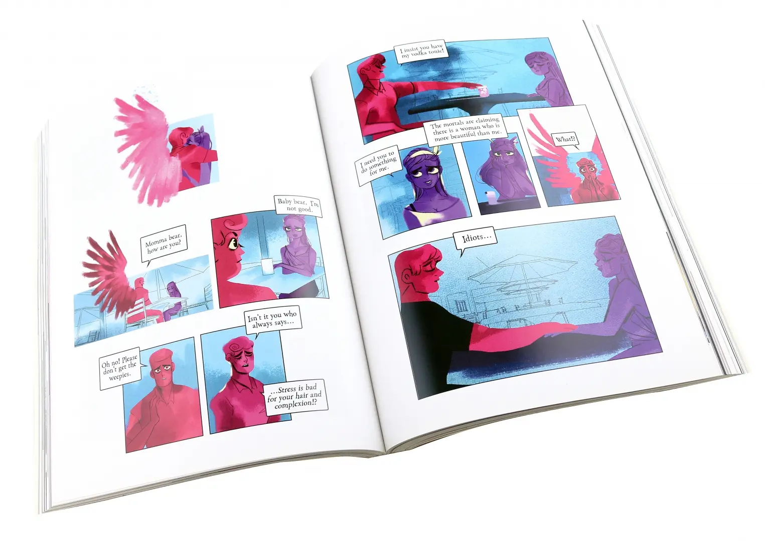 Поначалу история кажется простым переложением мифа: будто искусственно взяли и перенесли героев в современный мегаполис, где боги — такая золотая молодежь, прожигающая бессмертие в тусовках. Все потому, что их истории будут разворачиваться очень неспешно, приоткрывая читателю тайны и главных, и второстепенных персонажей. Отношения Деметры и Персефоны покажут сложности соблюдения границ в детско-родительском союзе и то, как любящая мать может делать больно любимой дочери. Поведение Афродиты — продемонстрирует важность работы над самооценкой, а также то, что статус прекраснейшей богини Олимпа не гарантирует здоровой самоуверенности.