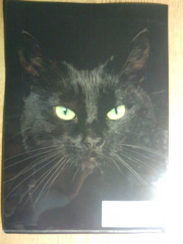Папка без сомнения очень красивая. Честно говоря, я думала, что на черном фоне будут выделяться большие выразительные глаза, а остальное как бы растворяться в темноте(как на фото), но в реале кошачья мордочка полностью различима(даже усища видны. Морда кошки нанесена с двух сторон.Сути дела это не меняят, но все же эл...