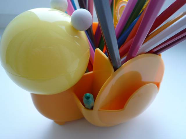 Представлен в ассортименте: и цвета, и фигурки. Приобрела его для дочки, чтобы ставить карандаши, потому как из обычного стаканчика они (при неловком задевании) всегда падали.