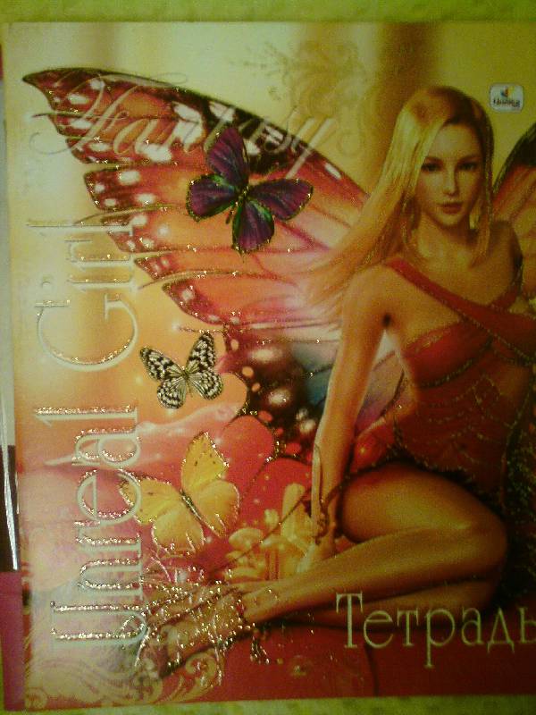 дочь 11л сама выбирала. Тетрадь яркая красивая я бы сказала вызывающая. У нас на обложке другая девушка. Поля в тетради в три клеточки. В конце тетради интересная информация о феях