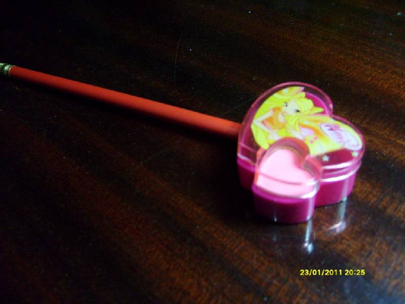 С ластиком в виде сердечка (вкладывается в точилку).