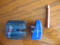 Хорошая точилка. Мне досталась голубая. Покупала специально для толстых карандашей. Контейнер плотно прилегает к точилке. Карандаши затачивает отлично, надо всего несколько оборотов. несколько фото для уточнения отзыва.