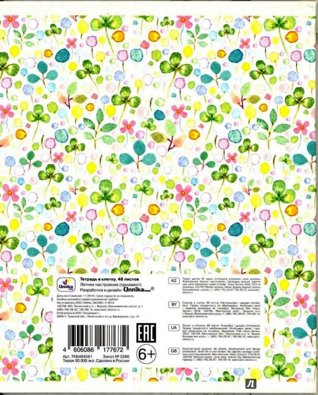 Тетрадь 48 листов, клетка "Летнее настроение", в ассортименте (ТКБ484561)