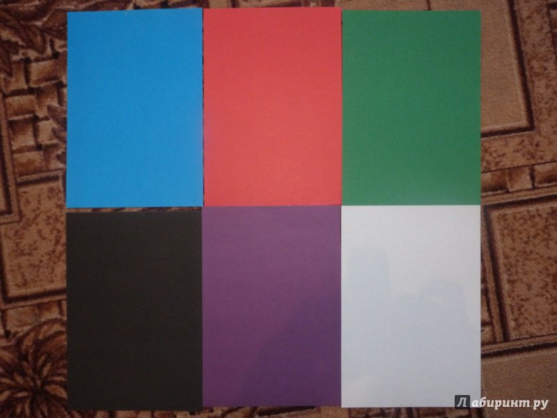 Цвета яркие. Картон не толстый. Но формат не А4 - меньше на 2 см.