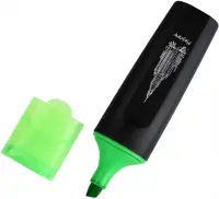 Неплохой текстовыделитель. Имеется скол на корпусе. Линия выделения не очень широкая, но и не совсем узкая. Колпачок сам по себе не откроется, сидит очень плотно. Узор на корпусе не дает скользить в руках. По мне, цвет немного темноват, но кому-то может и понравиться.