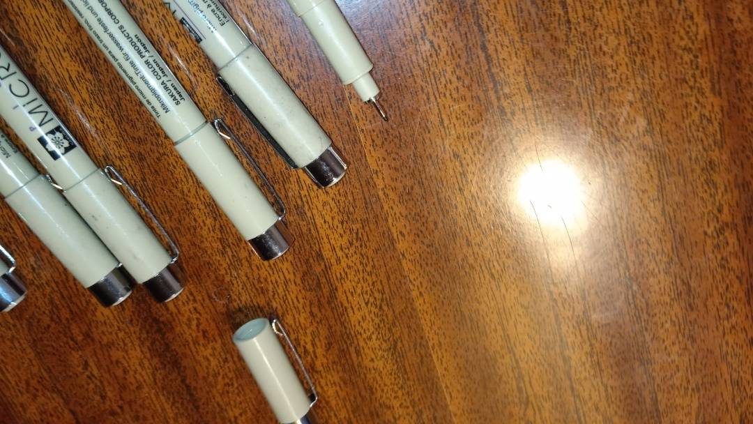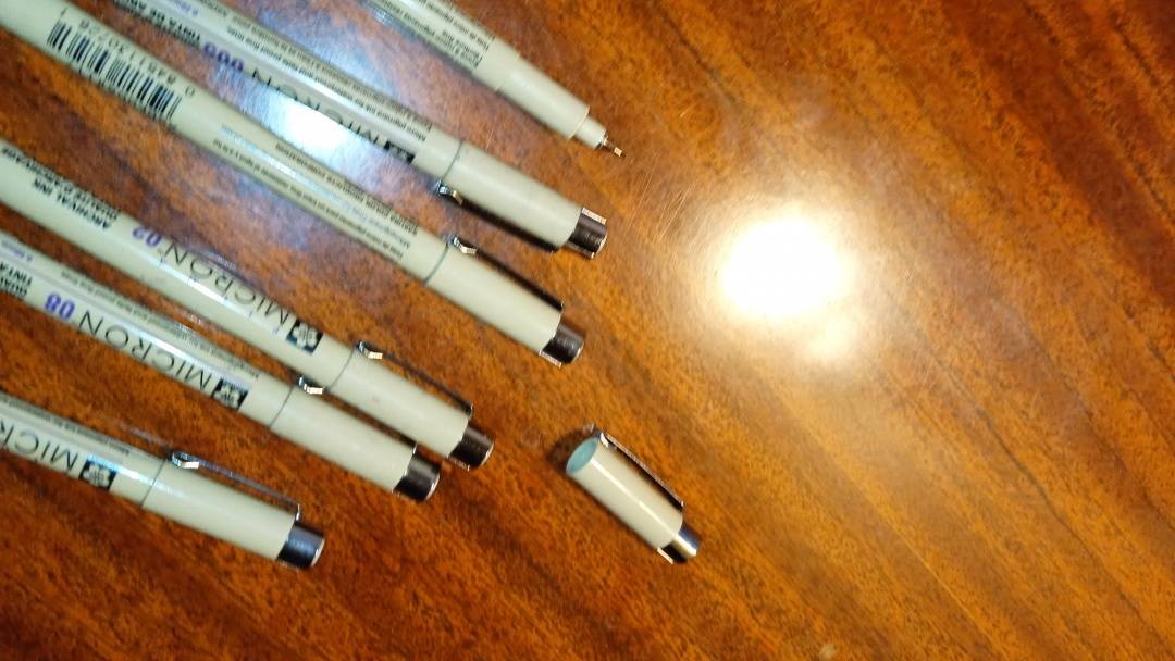 6 чёрных ручек Pigma Micron: 005 (0.2мм), 01 (0.25мм), 02 (0.3мм), 03 (0.35мм), 05 (0.45мм), 08 (0.5мм)