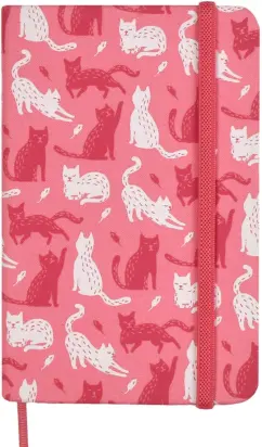 Записная книжка, А6, КОТЫ (92x142 мм, 96 л., твёрдый переплёт, ниткошвейный, шелкография в две краски, белый офсет 70 г/м2, печать в одну краску, линия, справочный материал: нет, печать форзаца: печать пантоном, закладка: 1 ляссе, «бандероль» + ПЭТ-пакет).