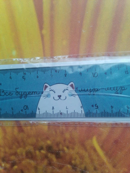 Купила эту пластиковую линейку в коллекцию тетрадей"Мур-Мур. Эта коллекция отличается дизайном с изображением милашных котиков и позитивной надписью" Всё будет мур-мур". Фото прилагаю: