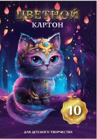 Картон Динозавры, цветной, 10 листов/10 цветов, А4