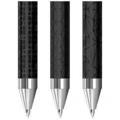 Шариковая ручка с дизайном стильной кросс-продуктовой серии DoubleBlack выглядит строго, но оригинально благодаря глянцевому узору на черном матовом фоне. Надежный металлический клип и хромированный наконечник добавляют ручке солидности.