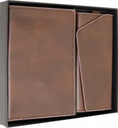 Набор подарочный Шеврет, обложка для паспорта, ключница, коричневый