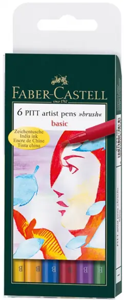 Капиллярные ручки Faber-Castell Pitt Artist Pen Brush Basic имеют в своём составе пигментированные и светостойкие чернила, которые идеально подходят для создания рисунков, макетов, дизайна одежды и иллюстраций.