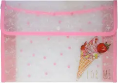 Удобная папка-конверт стандартного размера А4. Выполнена в розовых оттенках с изображением мороженого.