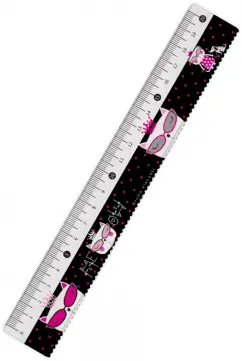Пластиковая линейка с волнистым краем, длиной 20 см, из коллекции "Ginza cats". Украшена изображением белых кошек в розовых коронах и надписью "Meow". Изготовлена из качественного нетоксичного пластика. По верхнему краю линейки расположена прозрачная шкала с разметкой и цифрами. Есть фаска, которая