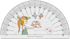 Пластиковый транспортир из серии "Happy Graphix". Прекрасно подойдет для использования на уроках математики в средней школе. Транспортир оформлен нежным принтом: девочка в венке ловит кролика. Он изготовлен из нетоксичного прозрачного пластика. Шкалы с разметками нанесены тиснением и не сотрутся. Есть фаска для точности и удобства измерений.