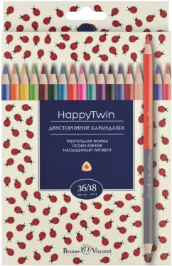 Карандаши цветные Happy TwinColor, 36 цветов, 18 штук, в ассортименте