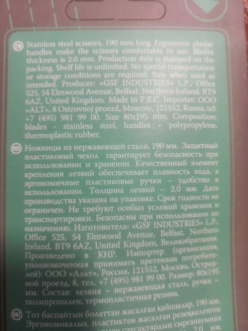 Заказала данные ножницы, но к сожалению приехали без защитного чехла, но посмотрев товар в упаковке понравились, ручки удобные, лезвия прочные. Перезакажу ещё раз. После дополню отзыв.