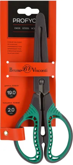 Ножницы из коллекции "ProfyCut" средней длины 19 см. Прочные бытовые Ножницы с защитным чехлом. Лезвия из нержавеющей стали достаточно острые и надежные толщиной 2,0 мм, не деформируются, уверенно режут толстый картон. Ножницы удобно ложатся в руку. Плавный ход лезвий и эргономичные ручки позволяют работать с ножницами достаточно длительное время, не испытывая усталости и дискомфорт в запястьях. Мягкое прорезиненное покрытие не натирает пальцы, не скользит, позволяя четко контролировать аккуратность и точность работы. Упакованы в индивидуальную картонную подложку.