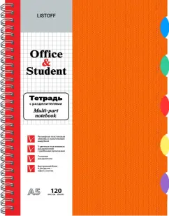 Тетрадь с разделителями Оранжевая, А5, 120 листов, клетка
