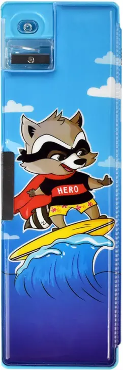 Пенал школьный Енот-серфингист, ПВХ, 21.5x7x3 см
