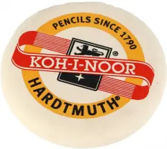 Ластик Koh-I-Noor диаметром 70 мм. Изготовлен из сырья на натуральной основе, без добавления пластика и фталатов. Предназначен для стирания графитовых линий в диапазоне 3B-3H.