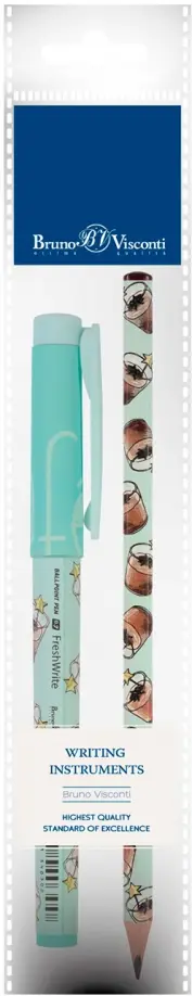 Ручка шариковая FreshWrite, синяя и карандаш чернографитный HappyGraphix. Шоколадный коктейль, НВ