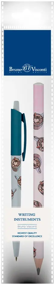 Ручка шариковая автоматическая HappyClick, синяя и карандаш HappyGraphix Jumbo. Горячий шоколад, 4B