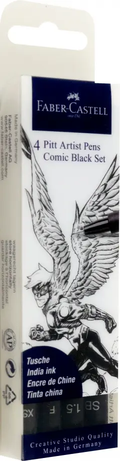 Рисунки тушью имеют очень давнюю художественную традицию. Это всегда было интересным средством для художников и графиков, оно придает рисункам выразительность и долговечность, а также может сочетаться со многими другими техниками рисования. Faber-Castell объединил все преимущества художественных чернил с преимуществами современной, простой в использовании ручки - ручки Pitt Artist Pen. Пигментированные и очень светостойкие чернила для рисования идеально подходят для эскизов, рисунков, макетов, дизайна одежды и иллюстраций.