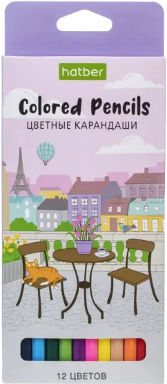 В наборе 12 шестигранных цветных карандашей с заточенным грифелем. Корпус изготовлен из высококачественной древесины, гладкость которой обеспечена многослойной покраской. Их удобно держать в руках, они легко затачиваются, имеют прочный грифель. Яркие насыщенные цвета оставляют мягкие штрихи и ровно