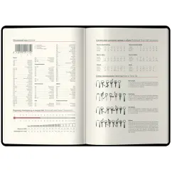 Высококачественная кремовая бумага повышенной плотности 80 г/м2, пантонная печать блока в 2 краски, справочный материал, географические карты на форзацах.