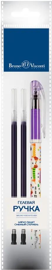 Ручка гелевая Пиши-стирай, DeleteWrite Happy. Таксы, синяя, с 2 запасными стержнями, в ассортименте